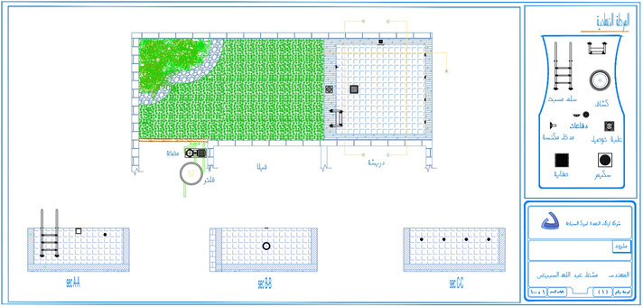 متخصصون في مجال المسابح: تصميم وتنفيذ مسابح السكيمر والإنفينيتي والاوفر فلو ، الساونا والجاكوزي والبخار واعمال النوافير والشلالات.